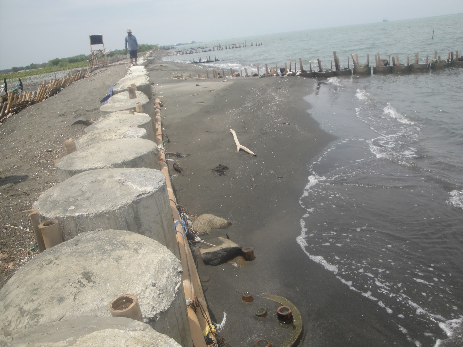 Alat Pemecah Ombak (APO) dari beton menggantikan peranan hutan mangrove sebagai pencegah abrasi pantai.